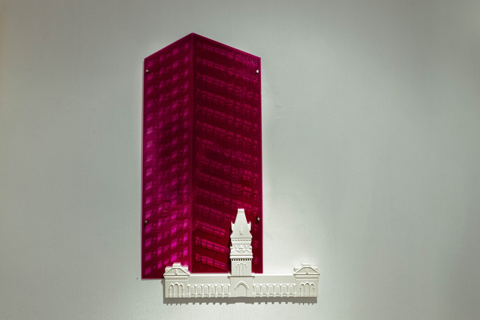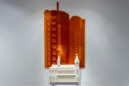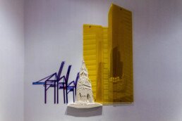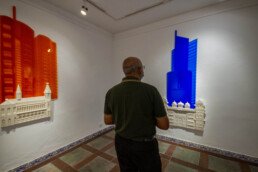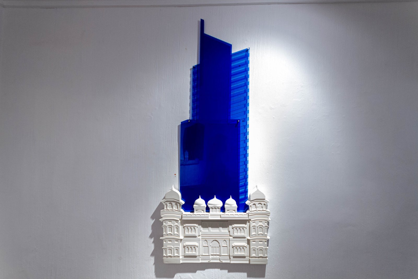 In order to exhibit their relationship, in my work, I augmented their 2D forms and let their colors speak for the space they create for themselves in Karachi’s earthly tones. I believe that this dismantling and rebuilding of Karachi allows modern architecture to complement our historical landmarks; giving each their own space and simultaneously allowing them to highlight the presence of the other in the bold contrasts of white against bright colors.