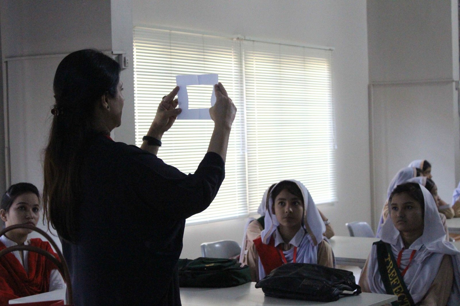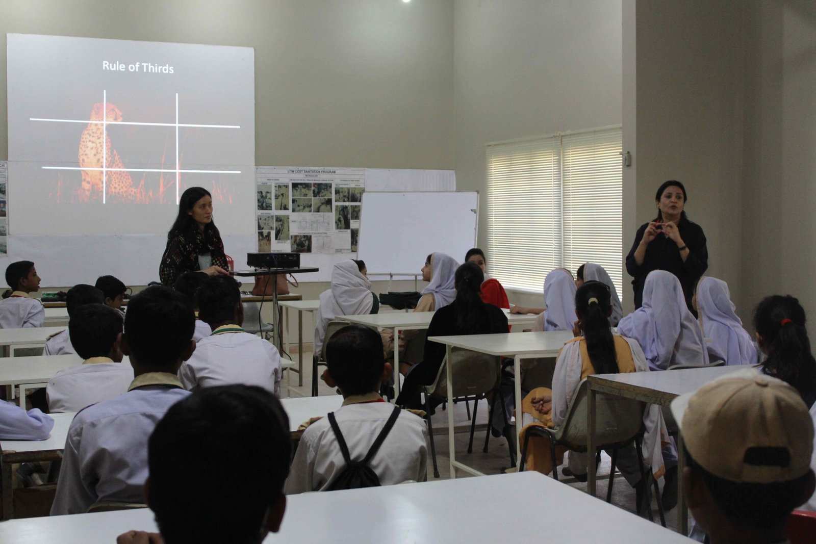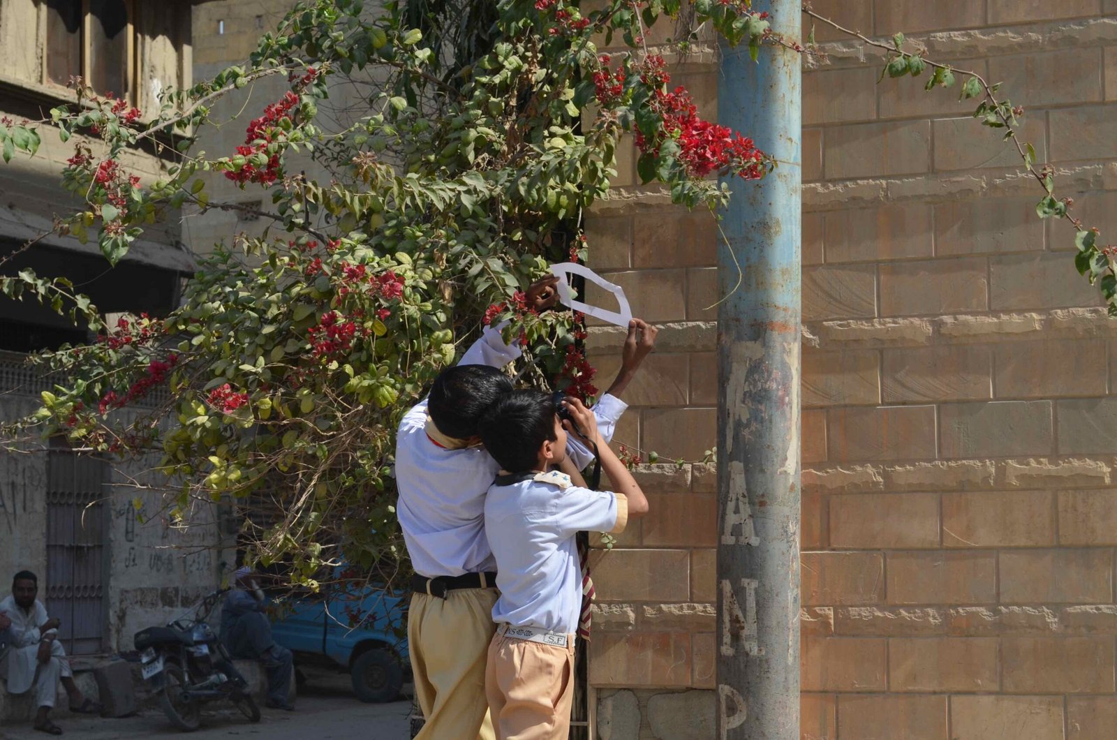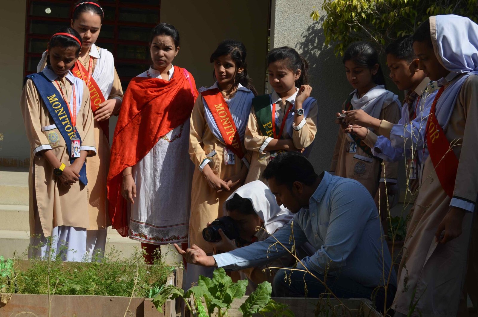 Vasl resident artists are encouraged to share their field of expertise with students from underprivileged backgrounds. Vasl continues to create links with regional communities through contemporary art. As a photographer with journalistic experience, in addition to having an artistic practice, Wei Leng Tay proposed a day long photography workshop with students from Matchless Public School and Superior Secondary, Orangi Town. The students learnt the basic functioning of a digital camera. They were guided on how to use light and create interesting compositions using the OPP Centre as their location. The students were split into groups of 5 and were given the task to capture objects, colours and compositions which represented ‘happiness’ to them.