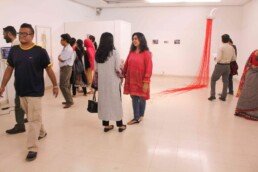 Ahsan Jamal, a miniature painter, brought personal and familial narratives into the program, examining the events of 1947 in light of his father’s poetry, who witnessed the division of Punjab in 1947. Ayub Wali is an artist from Gilgit-Baltistan – a province that joined the Pakistani state in 1948 and has struggled to find an identity within the political organization of the country. Through his installations, he brought a unique perspective of conflict during the partition of British India. Parallel to the VM Opening, CAP showcased a chronological display of archival materials representing Pakistan’s development between 1947 and 1971. The exhibition at the IVS Art Gallery opened with Zambeel Dramatic Readings Shigaaf, a performance commissioned by Vasl. Zambeel members Mahvash Faruqi, Saife Hasan and Asma Mundrawala presented theatrical performances based on The Body by Afsan Chowdhry and Tishnagi by Masood Mufti.