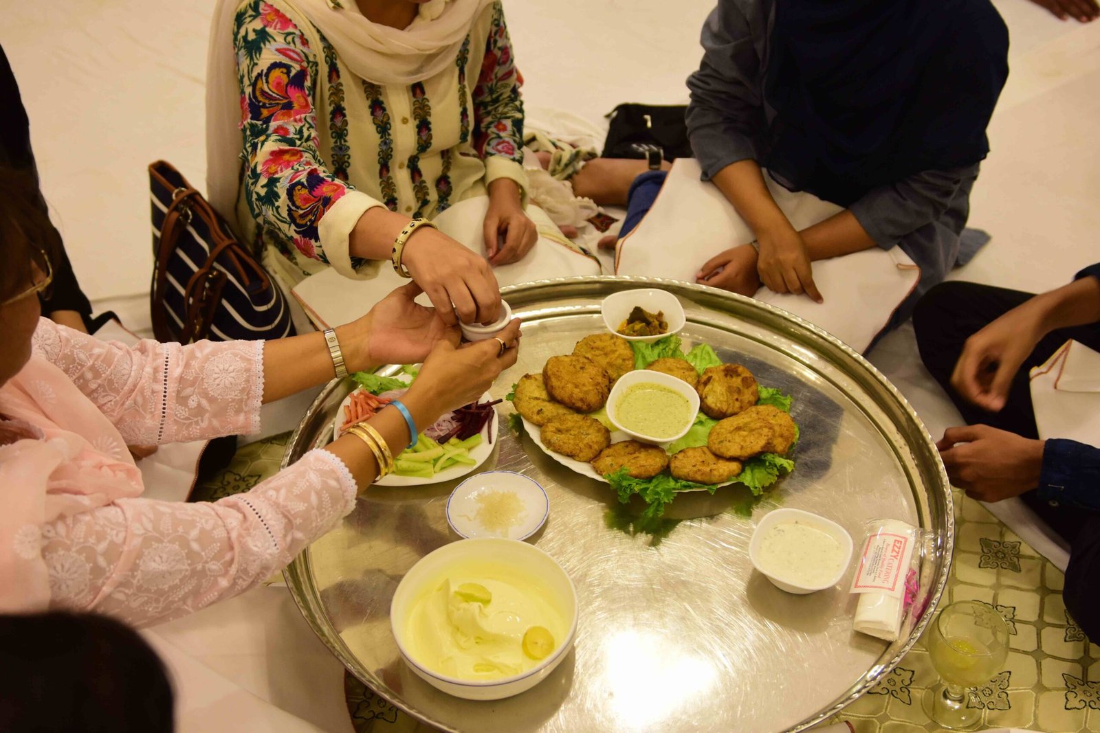 During the duration of the dinner, all the participants were silent, including the Bohra servers who were bringing in each course for those seated around the thaal. All courses served were vegetarian friendly, keeping with the rules of the Silent Dinner in addition to encouraging participants to enjoy the meat-less food in multiple forms.